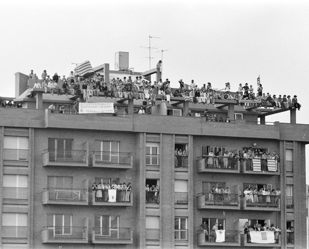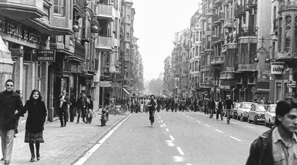 Instants de lluita obrera, de lluita veïnal, de lluita estudiantil i de lluita feminista. Una gran assemblea de la SEAT, l’any 1976, un cop ja mort el dictador, i un grup de treballadors de la construcció reunits sota l’aixopluc d’una església. O els veïns de Roquetes construint amb les seves mans una claveguera, el 1964, per intentar començar a dignificar un barri que encara estava a mig fer.